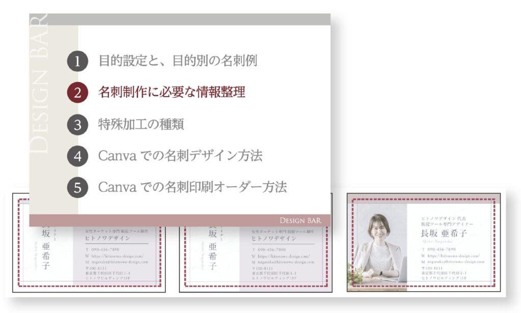 名刺の種類やレイアウトのコツ、フォントの大きさ、印刷方法まで一気に習得できます。